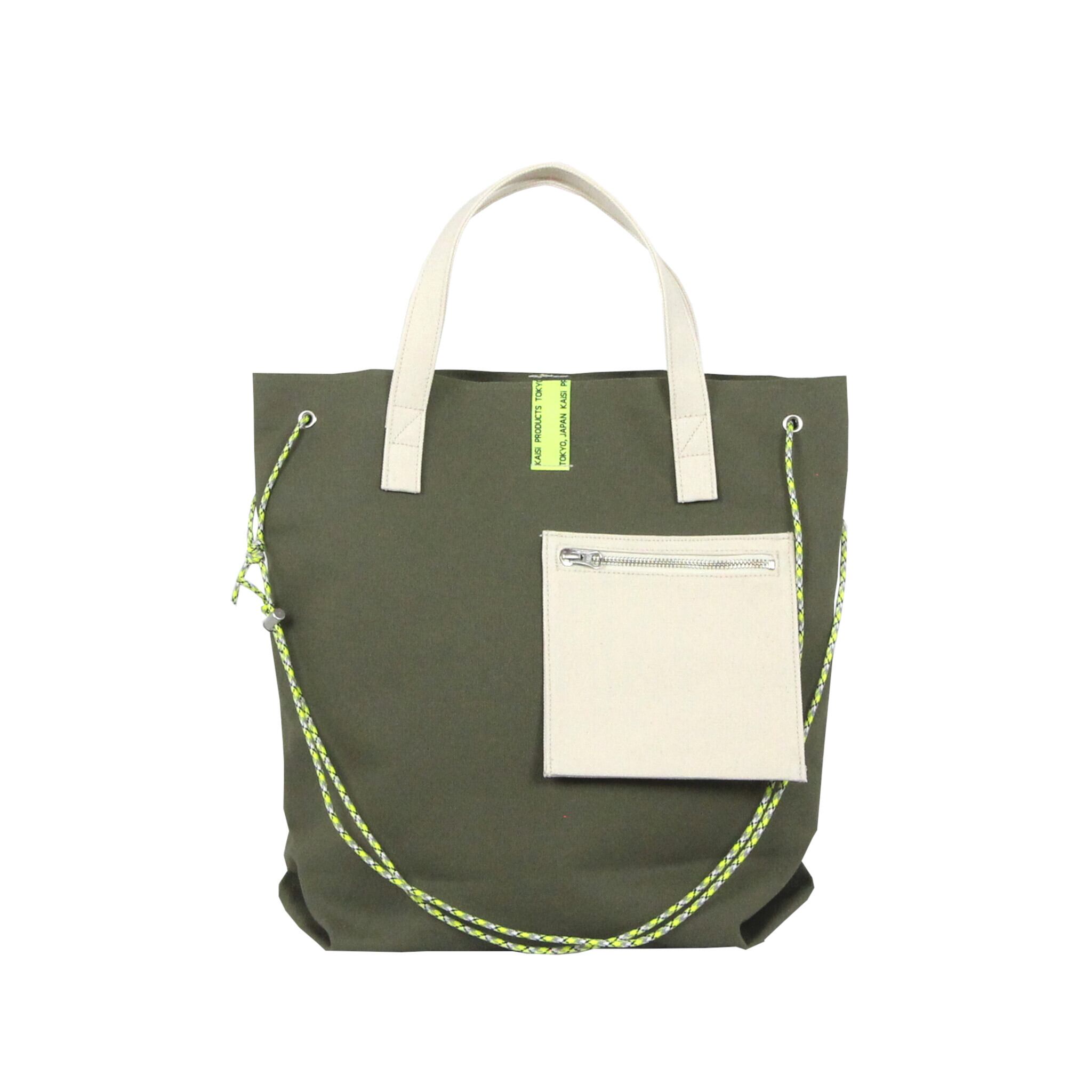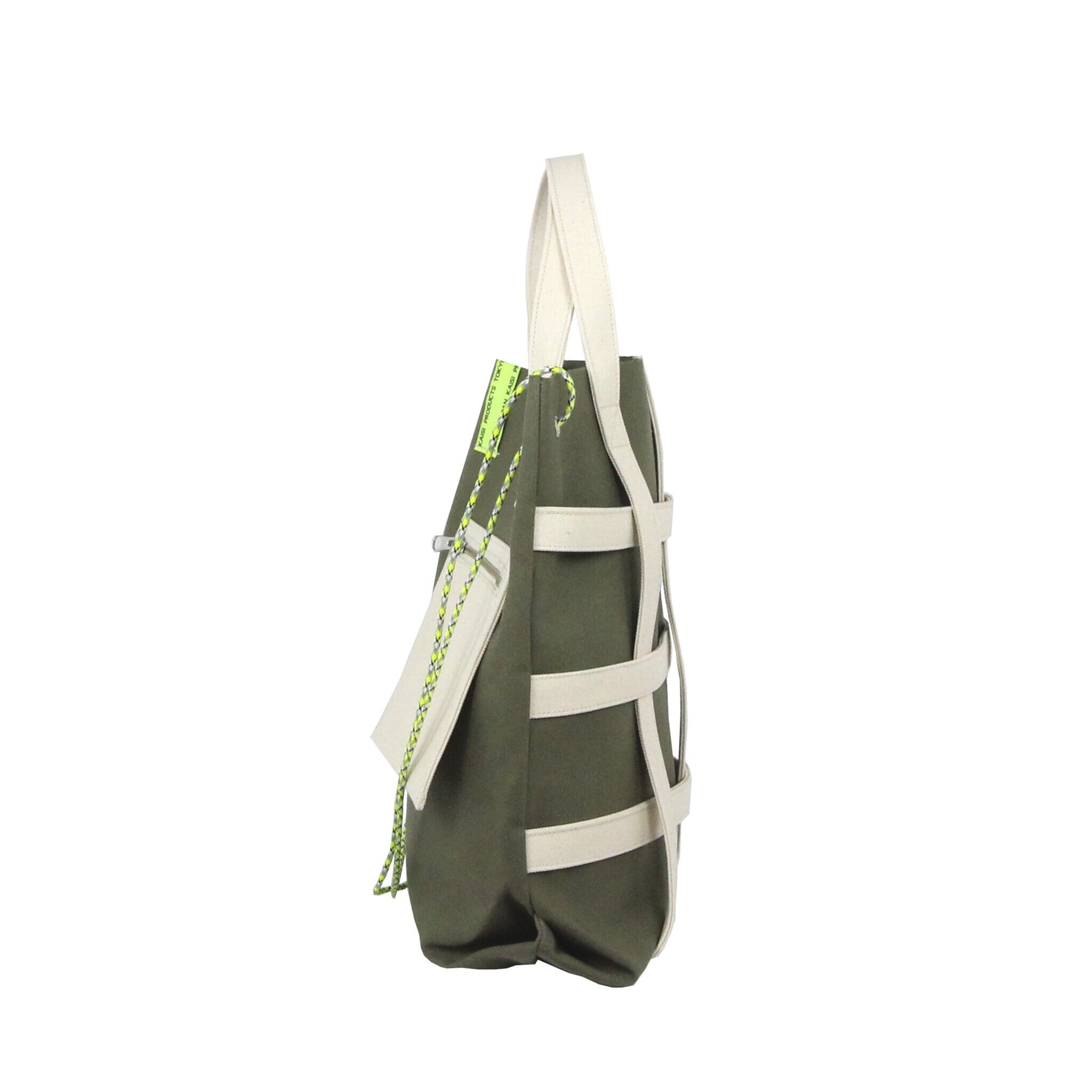 KAiSi Ruda - キャンバス ストラップグリッドトート / KHAKI × NEON YELLOW